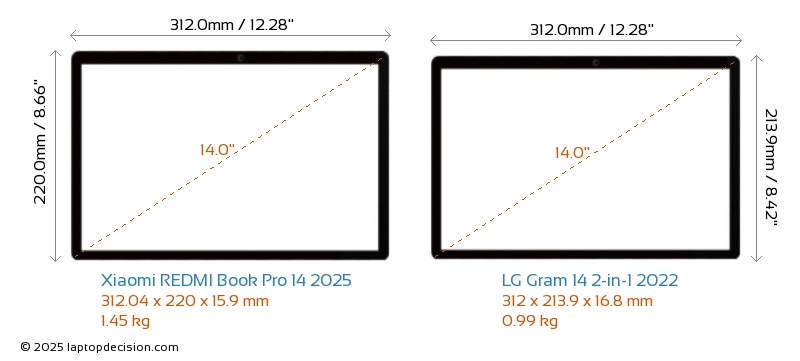 HDMIBoth REDMI Book Pro 14 2025 and Gram 14 2-in-1 2022 feature an HDMI port. REDMI Book Pro 14 2025 offers 1x HDMI 2.1, while Gram 14 2-in-1 2022 offers 1x HDMI 2.0.