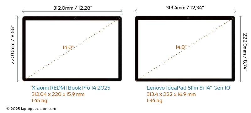 HDMIBoth REDMI Book Pro 14 2025 and IdeaPad Slim 5i 14" Gen 10 feature an HDMI port. REDMI Book Pro 14 2025 offers 1x HDMI 2.1, while IdeaPad Slim 5i 14" Gen 10 offers 1x HDMI 1.4.