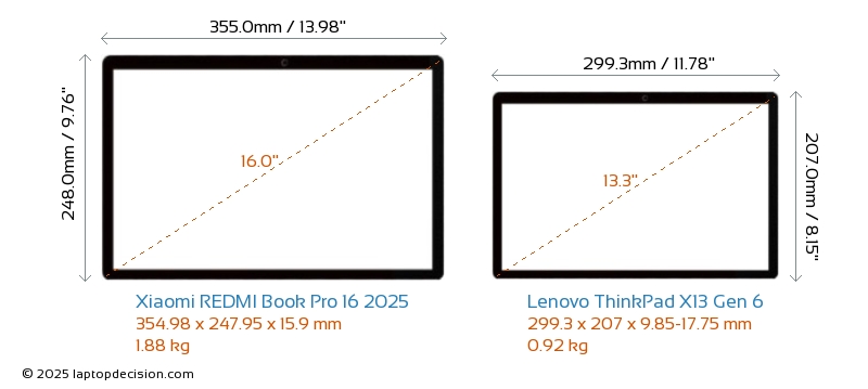 HDMIBoth REDMI Book Pro 16 2025 and ThinkPad X13 Gen 6 feature an HDMI port (1x HDMI 2.1) for connecting to external monitors.