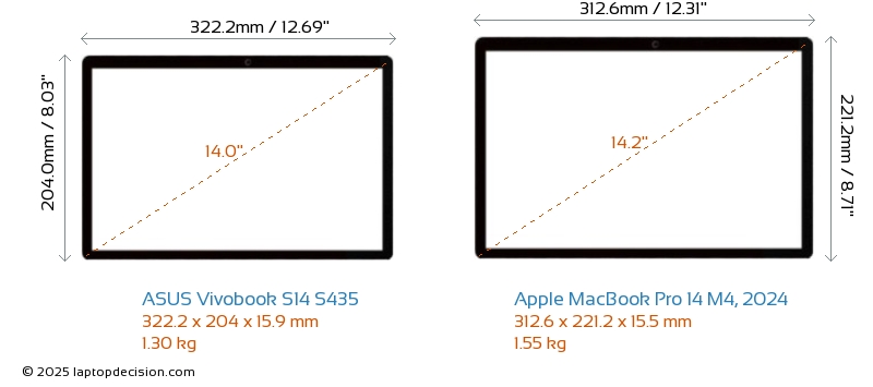 SD-KartenleserBeide, Vivobook S14 S435 und MacBook Pro 14 M4, 2024, sind mit einem SD-Kartenleser ausgestattet, um einen einfachen Zugriff auf Speicherkarten zu ermöglichen.