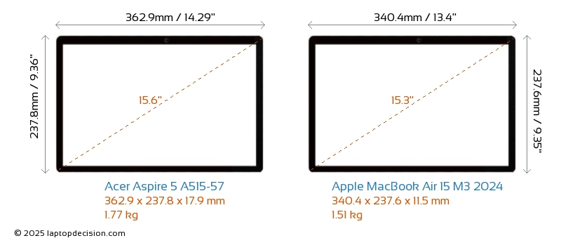 USB Aspire 5 A515-57 ist mit 3x USB 3.2 USB-A-Ports ausgestattet. MacBook Air 15 M3 2024 hat keine USB-A-Ports.Beide Aspire 5 A515-57 und MacBook Air 15 M3 2024 haben USB-Type-C-Ports. Aspire 5 A515-57 hat 1x USB 3.2 USB Type-C-Ports, während MacBook Air 15 M3 2024 2x USB 4.0 USB Type-C-Ports hat.