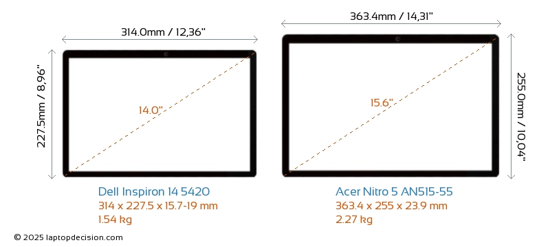 HDMIBeide, Inspiron 14 5420 und Nitro 5 AN515-55, verfügen über einen HDMI-Port. Inspiron 14 5420 bietet 1x HDMI 1.4, während Nitro 5 AN515-55 1x HDMI 2.0 bietet.