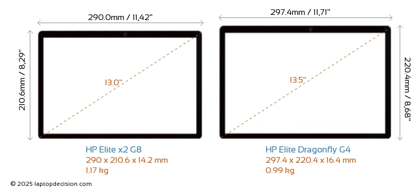 HDMI Elite Dragonfly G4 verfügt über einen HDMI-Port (1x HDMI 2.1) zum Anschluss an externe Monitore. Elite x2 G8 hat keinen HDMI-Port.