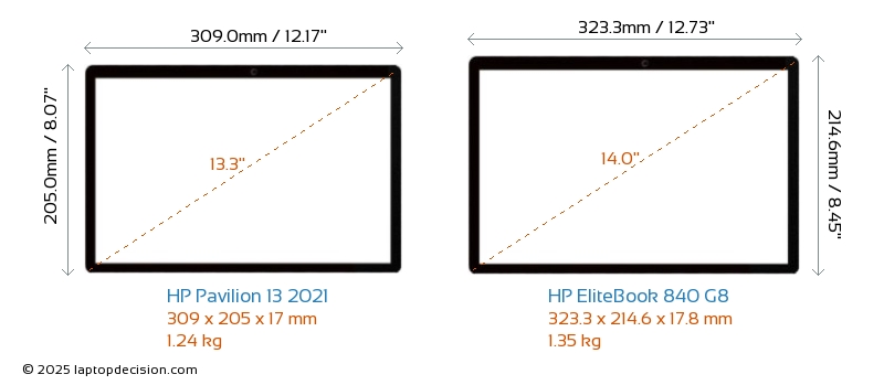 HDMIBeide, Pavilion 13 2021 und EliteBook 840 G8, verfügen über einen HDMI-Port (1x HDMI 2.0) zum Anschluss an externe Monitore.