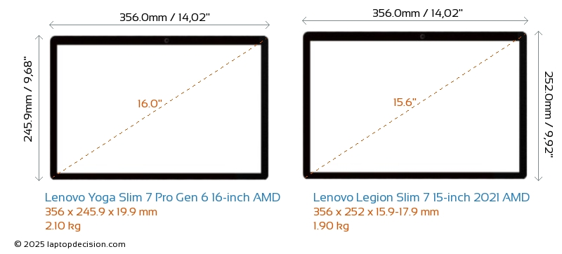 HDMIYoga Slim 7 Pro Gen 6 16-inch AMD verfügt über einen HDMI-Port (1x HDMI 1.4) zum Anschluss an externe Monitore. Legion Slim 7 15-inch 2021 AMD hat keinen HDMI-Port.