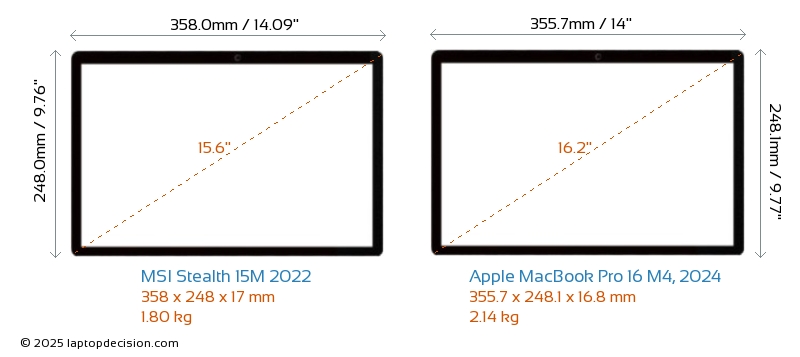 AudioanschlussBeide, Stealth 15M 2022 und MacBook Pro 16 M4, 2024, sind mit einem 3,5-mm-Audioanschluss ausgestattet, der eine nahtlose Verbindung zu Kopfhörern und Lautsprechern ermöglicht.