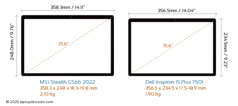 USBBeide Stealth GS66 2022 und Inspiron 15 Plus 7501 haben USB-A-Ports. Stealth GS66 2022 hat 2x USB 3.2 USB-A-Ports, während Inspiron 15 Plus 7501 2x USB 3.1 USB-A-Ports hat.Stealth GS66 2022 ist mit 3x USB 3.2 USB Type-C-Ports ausgestattet. Inspiron 15 Plus 7501 hat keine USB Type-C-Ports.