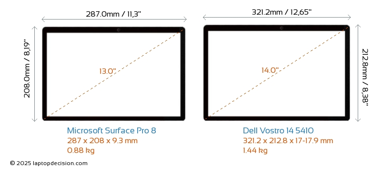 HDMIVostro 14 5410 verfügt über einen HDMI-Port (1x HDMI 1.4) zum Anschluss an externe Monitore. Surface Pro 8 hat keinen HDMI-Port.