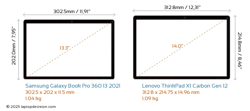ThunderboltBeide, Galaxy Book Pro 360 13 2021 und ThinkPad X1 Carbon Gen 12, sind mit Thunderbolt 4-Ports ausgestattet.