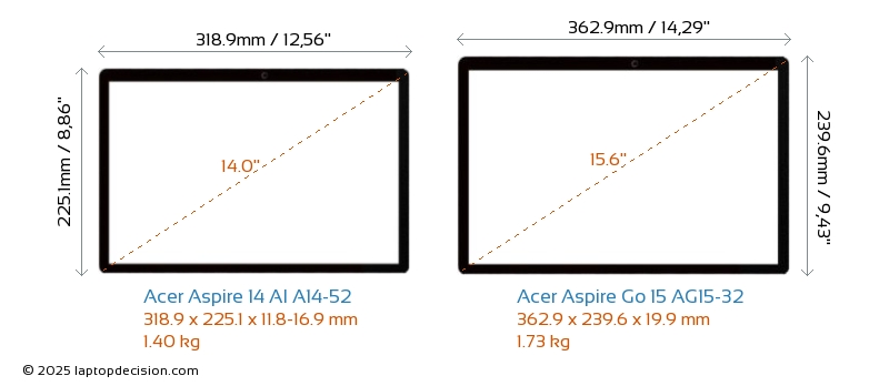 Thunderbolt Aspire 14 AI A14-52 ist mit einem Thunderbolt 4-Port ausgestattet. Aspire Go 15 AG15-32 hat keinen Thunderbolt-Port.