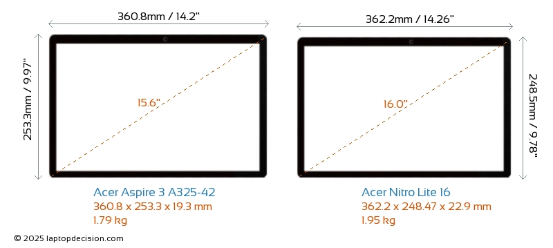 USBBeide Aspire 3 A325-42 und Nitro Lite 16 verfügen über 2x USB 3.2 USB-A-Ports.Beide Aspire 3 A325-42 und Nitro Lite 16 haben USB-Type-C-Ports. Aspire 3 A325-42 hat 2x USB 3.2 USB Type-C-Ports, während Nitro Lite 16 1x USB 4.0 USB Type-C-Ports hat.