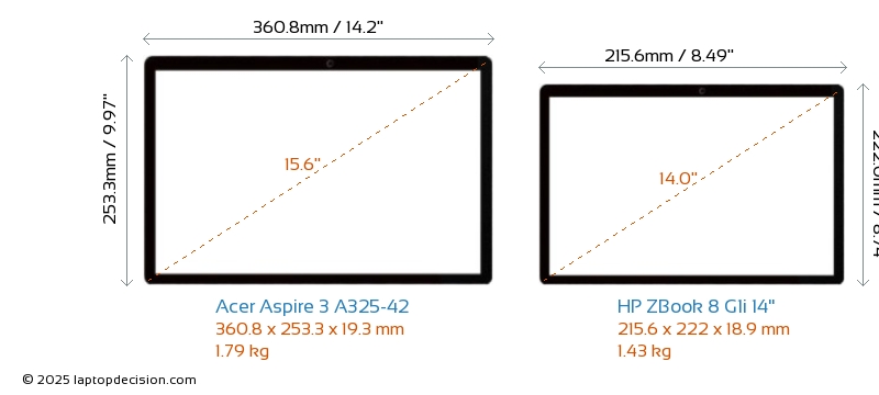 HDMIBeide, Aspire 3 A325-42 und ZBook 8 G1i 14", verfügen über einen HDMI-Port. Aspire 3 A325-42 bietet 1x HDMI 1.4, während ZBook 8 G1i 14" 1x HDMI 2.1 bietet.