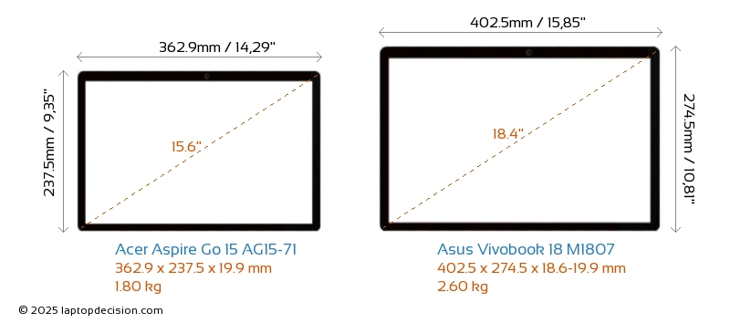 ThunderboltWeder Aspire Go 15 AG15-71 noch Vivobook 18 M1807 haben einen Thunderbolt-Port.