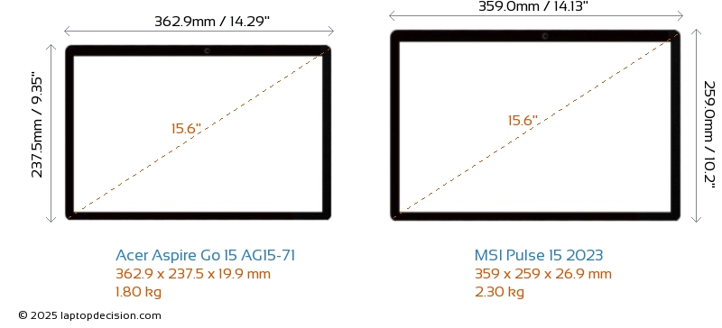 HDMIBeide, Aspire Go 15 AG15-71 und Pulse 15 2023, verfügen über einen HDMI-Port (1x HDMI 2.1) zum Anschluss an externe Monitore.