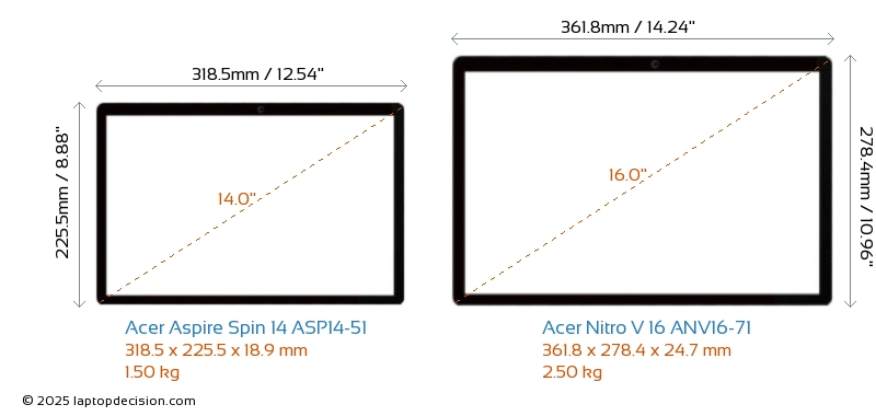 USBBeide Aspire Spin 14 ASP14-51 und Nitro V 16 ANV16-71 verfügen über 2x USB 3.2 USB-A-Ports.Beide Aspire Spin 14 ASP14-51 und Nitro V 16 ANV16-71 haben USB-Type-C-Ports. Aspire Spin 14 ASP14-51 hat 2x USB 4.0 USB Type-C-Ports, während Nitro V 16 ANV16-71 1x USB 4.0 USB Type-C-Ports hat.