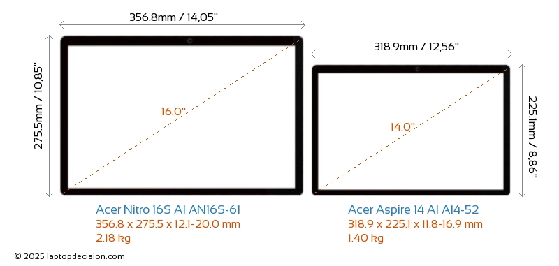 Thunderbolt Aspire 14 AI A14-52 ist mit einem Thunderbolt 4-Port ausgestattet. Nitro 16S AI AN16S-61 hat keinen Thunderbolt-Port.