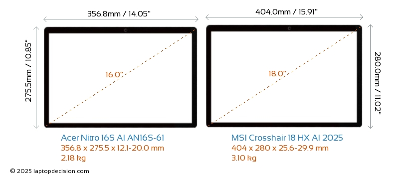 HDMIBeide, Nitro 16S AI AN16S-61 und Crosshair 18 HX AI 2025, verfügen über einen HDMI-Port (1x HDMI 2.1) zum Anschluss an externe Monitore.