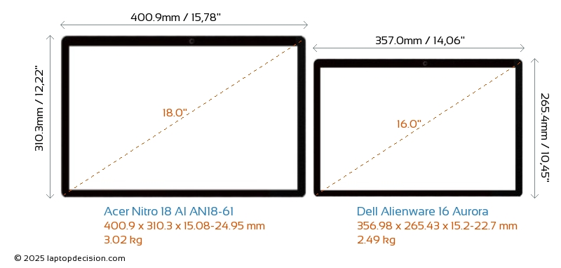 HDMIBeide, Nitro 18 AI AN18-61 und Alienware 16 Aurora, verfügen über einen HDMI-Port (1x HDMI 2.1) zum Anschluss an externe Monitore.