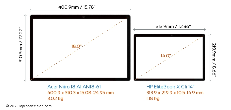 HDMIBeide, Nitro 18 AI AN18-61 und EliteBook X G1i 14", verfügen über einen HDMI-Port (1x HDMI 2.1) zum Anschluss an externe Monitore.