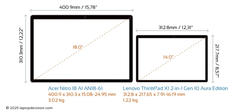AudioanschlussBeide, Nitro 18 AI AN18-61 und ThinkPad X1 2-in-1 Gen 10 Aura Edition, sind mit einem 3,5-mm-Audioanschluss ausgestattet, der eine nahtlose Verbindung zu Kopfhörern und Lautsprechern ermöglicht.