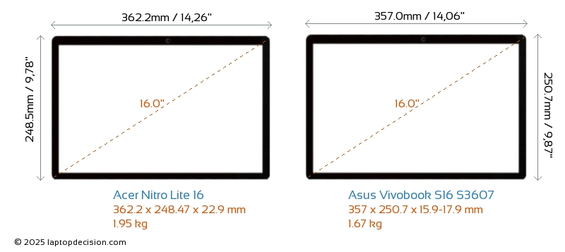 HDMIBeide, Nitro Lite 16 und Vivobook S16 S3607, verfügen über einen HDMI-Port (1x HDMI 2.1) zum Anschluss an externe Monitore.