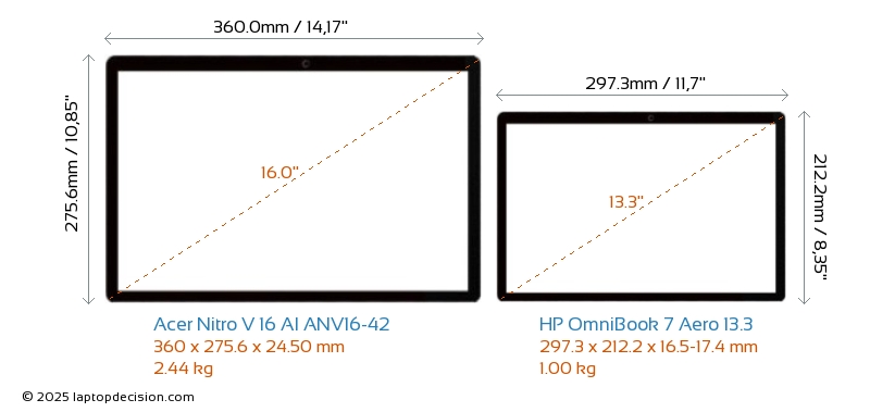 HDMIBeide, Nitro V 16 AI ANV16-42 und OmniBook 7 Aero 13.3 , verfügen über einen HDMI-Port (1x HDMI 2.1) zum Anschluss an externe Monitore.