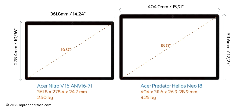 HDMIBeide, Nitro V 16 ANV16-71 und Predator Helios Neo 18, verfügen über einen HDMI-Port (1x HDMI 2.1) zum Anschluss an externe Monitore.