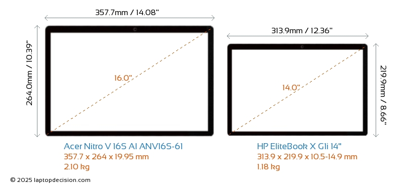 HDMIBeide, Nitro V 16S AI ANV16S-61 und EliteBook X G1i 14", verfügen über einen HDMI-Port (1x HDMI 2.1) zum Anschluss an externe Monitore.