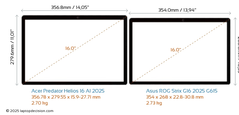 HDMIBeide, Predator Helios 16 AI 2025 und ROG Strix G16 2025 G615, verfügen über einen HDMI-Port (1x HDMI 2.1) zum Anschluss an externe Monitore.