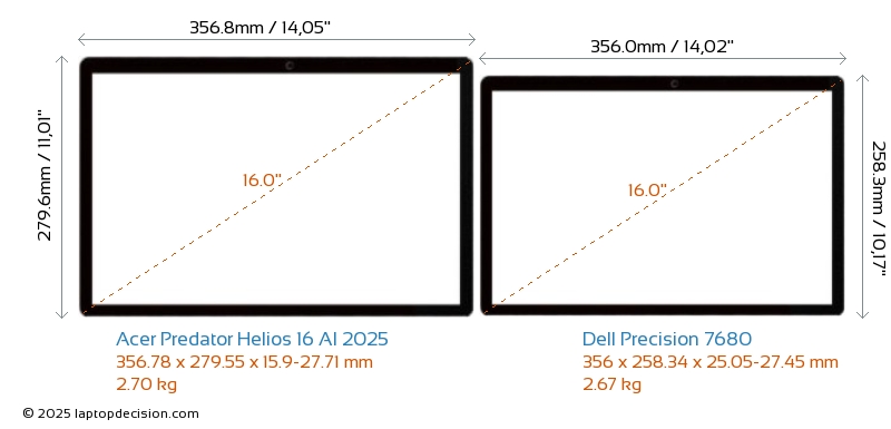 HDMIBeide, Predator Helios 16 AI 2025 und Precision 7680, verfügen über einen HDMI-Port (1x HDMI 2.1) zum Anschluss an externe Monitore.