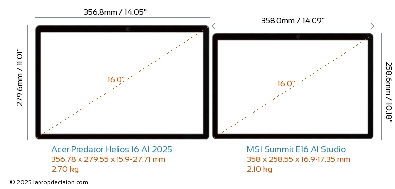 HDMIBeide, Predator Helios 16 AI 2025 und Summit E16 AI Studio, verfügen über einen HDMI-Port (1x HDMI 2.1) zum Anschluss an externe Monitore.