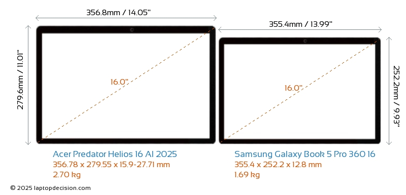 HDMIBeide, Predator Helios 16 AI 2025 und Galaxy Book 5 Pro 360 16 , verfügen über einen HDMI-Port (1x HDMI 2.1) zum Anschluss an externe Monitore.