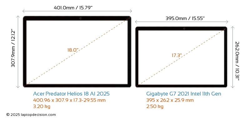 Thunderbolt Predator Helios 18 AI 2025 ist mit einem Thunderbolt 5-Port ausgestattet. G7 2021 Intel 11th Gen hat keinen Thunderbolt-Port.