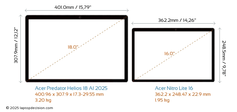 HDMIBeide, Predator Helios 18 AI 2025 und Nitro Lite 16, verfügen über einen HDMI-Port (1x HDMI 2.1) zum Anschluss an externe Monitore.