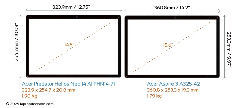 USBBeide Predator Helios Neo 14 AI PHN14-71 und Aspire 3 A325-42 verfügen über 2x USB 3.2 USB-A-Ports.Beide Predator Helios Neo 14 AI PHN14-71 und Aspire 3 A325-42 verfügen über 2x USB 3.2 USB-Type-C-Ports.