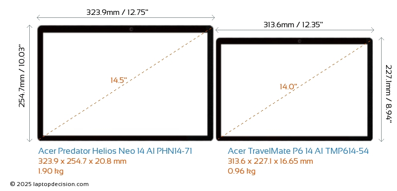 HDMIBeide, Predator Helios Neo 14 AI PHN14-71 und TravelMate P6 14 AI TMP614-54, verfügen über einen HDMI-Port (1x HDMI 2.1) zum Anschluss an externe Monitore.