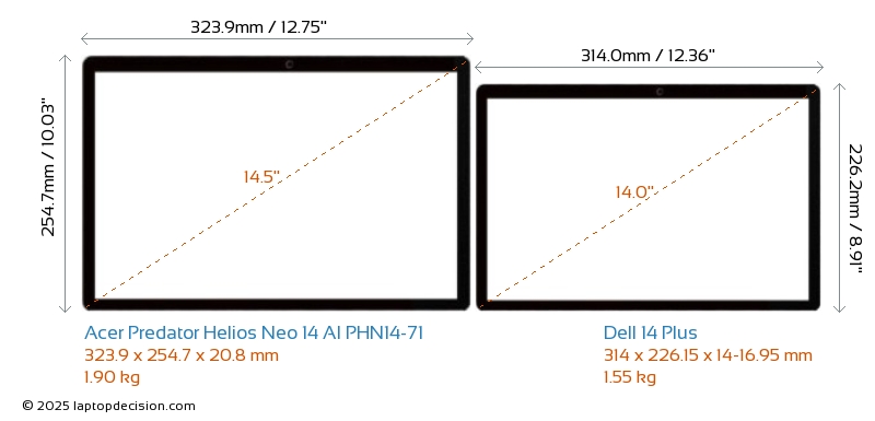 HDMIBeide, Predator Helios Neo 14 AI PHN14-71 und 14 Plus, verfügen über einen HDMI-Port (1x HDMI 2.1) zum Anschluss an externe Monitore.