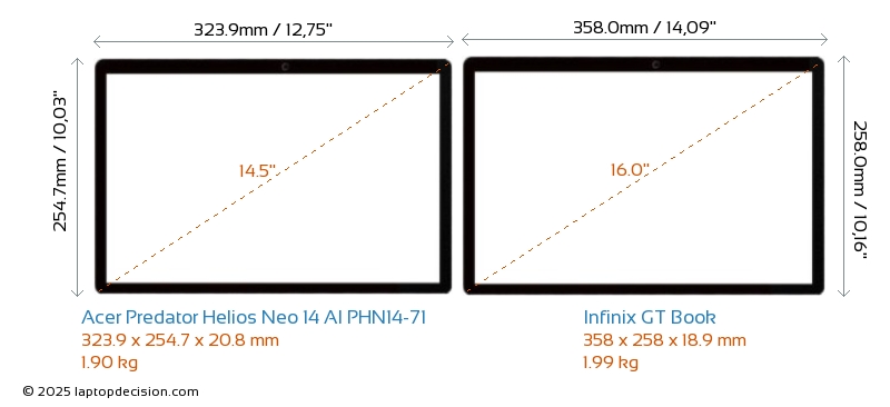 HDMIBeide, Predator Helios Neo 14 AI PHN14-71 und GT Book, verfügen über einen HDMI-Port (1x HDMI 2.1) zum Anschluss an externe Monitore.
