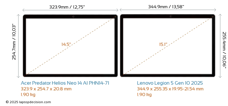 AudioanschlussBeide, Predator Helios Neo 14 AI PHN14-71 und Legion 5 Gen 10 2025, sind mit einem 3,5-mm-Audioanschluss ausgestattet, der eine nahtlose Verbindung zu Kopfhörern und Lautsprechern ermöglicht.