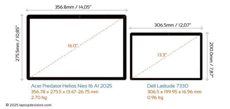 ThunderboltBeide, Predator Helios Neo 16 AI 2025 und Latitude 7330, sind mit Thunderbolt 4-Ports ausgestattet.