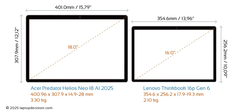 HDMIBeide, Predator Helios Neo 18 AI 2025 und Thinkbook 16p Gen 6, verfügen über einen HDMI-Port (1x HDMI 2.1) zum Anschluss an externe Monitore.