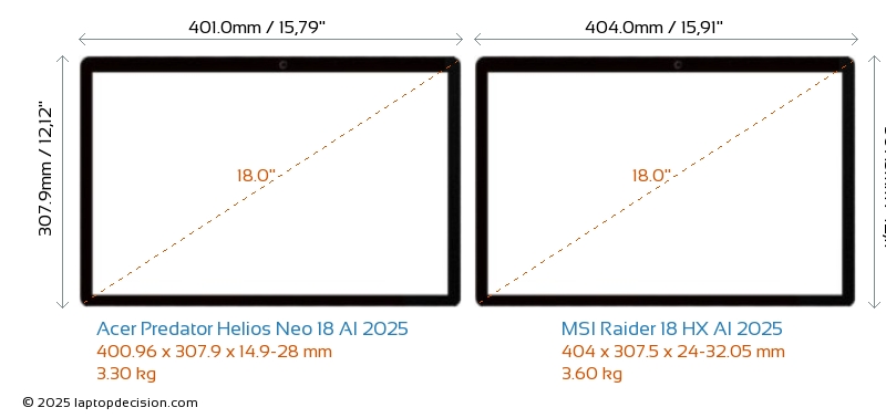 HDMIBeide, Predator Helios Neo 18 AI 2025 und Raider 18 HX AI 2025, verfügen über einen HDMI-Port (1x HDMI 2.1) zum Anschluss an externe Monitore.