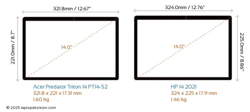 HDMIBeide, Predator Triton 14 PT14-52 und 14 2021, verfügen über einen HDMI-Port. Predator Triton 14 PT14-52 bietet 1x HDMI 2.1, während 14 2021 1x HDMI 1.4 bietet.