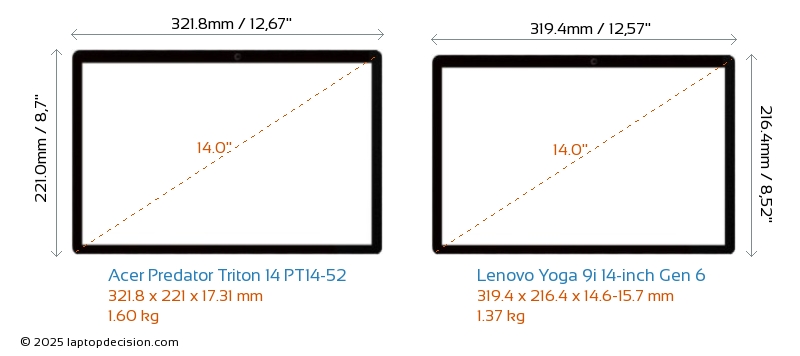 ThunderboltBeide, Predator Triton 14 PT14-52 und Yoga 9i 14-inch Gen 6, sind mit Thunderbolt 4-Ports ausgestattet.