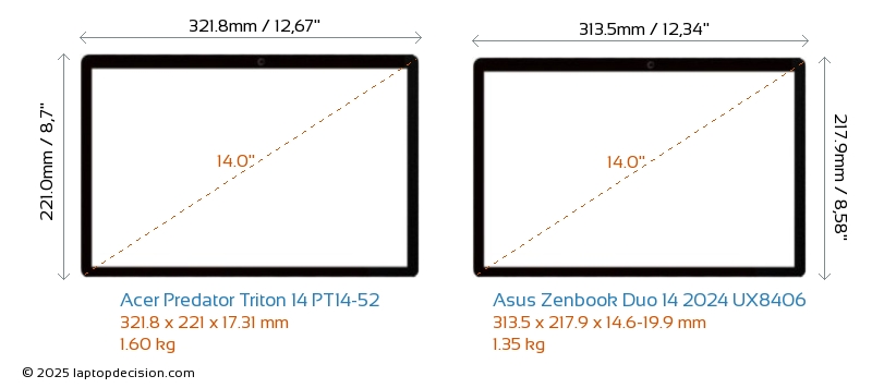 ThunderboltBeide, Predator Triton 14 PT14-52 und Zenbook Duo 14 2024 UX8406, sind mit Thunderbolt 4-Ports ausgestattet.