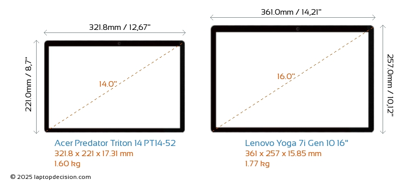 ThunderboltBeide, Predator Triton 14 PT14-52 und Yoga 7i Gen 10 16", sind mit Thunderbolt 4-Ports ausgestattet.