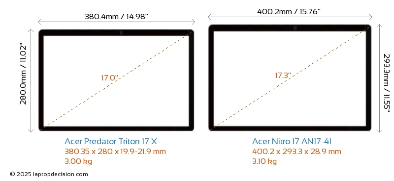 HDMIBeide, Predator Triton 17 X und Nitro 17 AN17-41, verfügen über einen HDMI-Port (1x HDMI 2.1) zum Anschluss an externe Monitore.