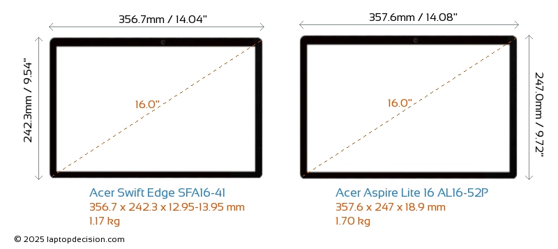 AudioanschlussBeide, Swift Edge SFA16-41 und Aspire Lite 16 AL16-52P, sind mit einem 3,5-mm-Audioanschluss ausgestattet, der eine nahtlose Verbindung zu Kopfhörern und Lautsprechern ermöglicht.