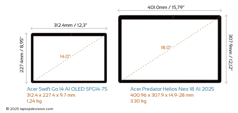 HDMIBeide, Swift Go 14 AI OLED SFG14-75 und Predator Helios Neo 18 AI 2025, verfügen über einen HDMI-Port (1x HDMI 2.1) zum Anschluss an externe Monitore.