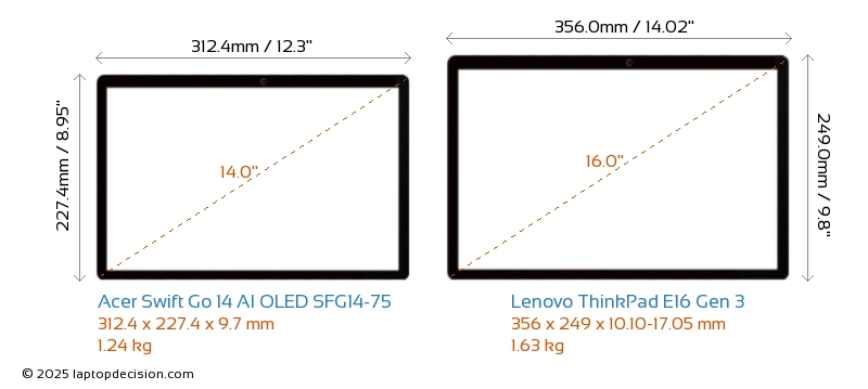 USBBeide Swift Go 14 AI OLED SFG14-75 und ThinkPad E16 Gen 3 verfügen über 2x USB 3.2 USB-A-Ports.Beide Swift Go 14 AI OLED SFG14-75 und ThinkPad E16 Gen 3 verfügen über 2x USB 4.0 USB-Type-C-Ports.